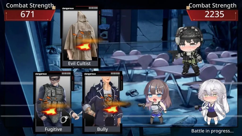 | Exploration (Outing) | Scavenging, Story Progression | Enemy encounters, Traps, Sanity loss events | ATK, HP, Insanity meter |